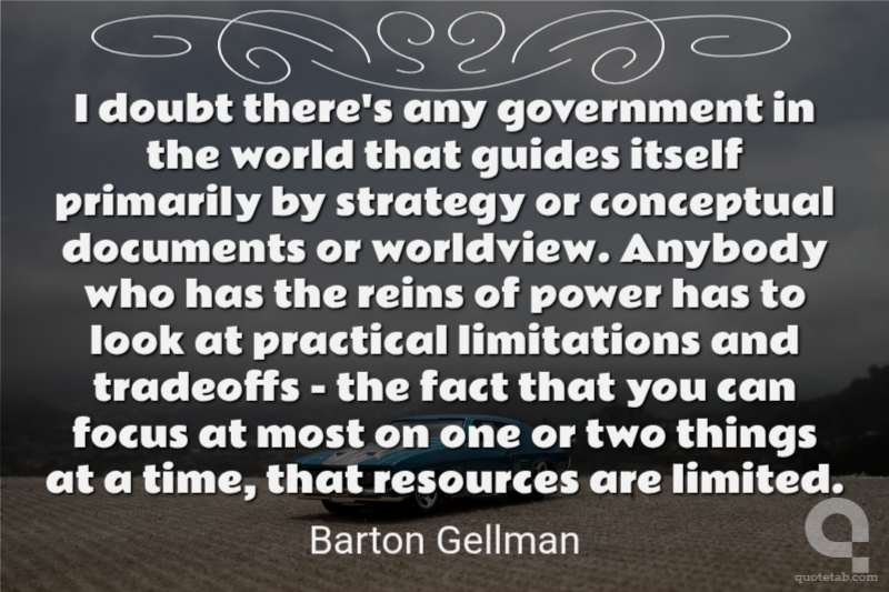 I doubt there's any government in the world that guides itself primarily by strategy or conceptual documents or worldview. Anybody who has the reins of power has to look at practical limitations and tradeoffs - the fact that you can focus at most on one or two things at a time, that resources are limited.