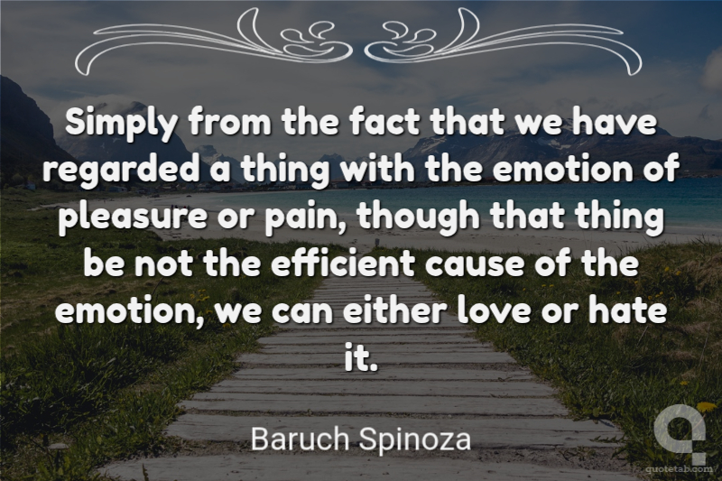 Simply from the fact that we have regarded a thing with the emotion of pleasure or pain, though that thing be not the efficient cause of the emotion, we can either love or hate it.