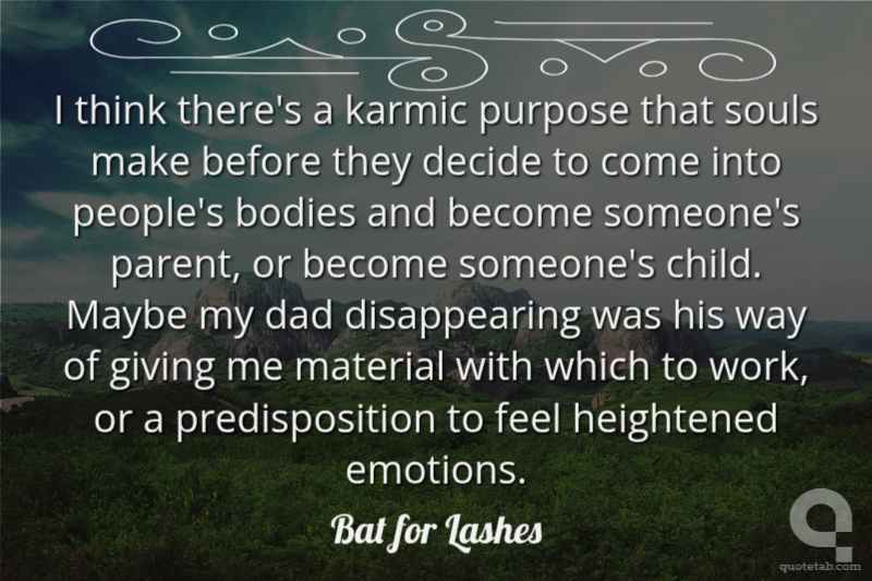 I think there's a karmic purpose that souls make before they decide to come into people's bodies and become someone's parent, or become someone's child. Maybe my dad disappearing was his way of giving me material with which to work, or a predisposition to feel heightened emotions.