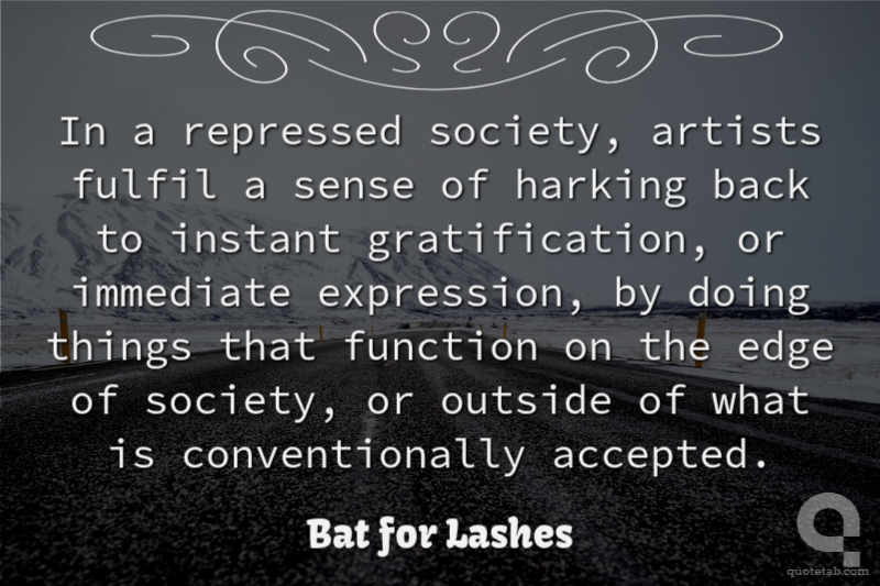 In a repressed society, artists fulfil a sense of harking back to instant gratification, or immediate expression, by doing things that function on the edge of society, or outside of what is conventionally accepted.