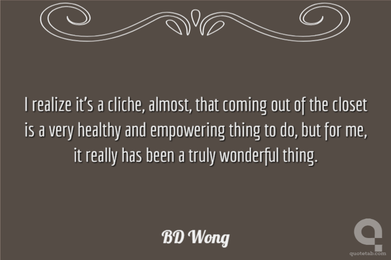 I realize it's a cliche, almost, that coming out of the closet is a very healthy and empowering thing to do, but for me, it really has been a truly wonderful thing.