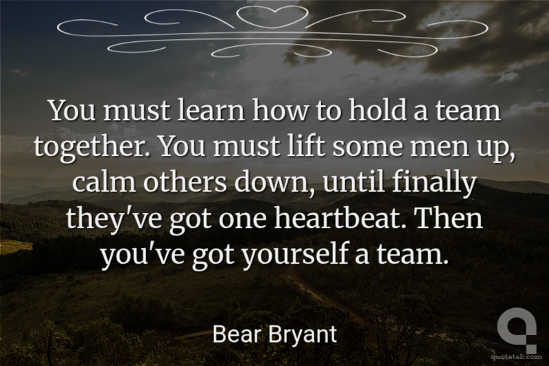 You must learn how to hold a team together. You must lift some men up, calm others down, until finally they've got one heartbeat. Then you've got yourself a team.