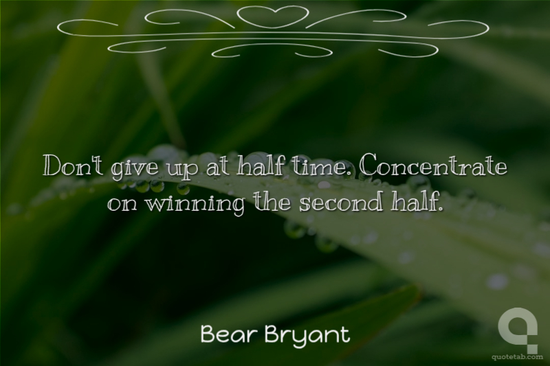 I have always tried to teach my players to be fighters. When I say that, I don't mean put up your dukes and get in a fistfight over something. I'm talking about facing adversity in your life. There is not a person alive who isn't going to have some awfully bad days in their lives. I tell my players that what I mean by fighting is when your house burns down, and your wife runs off with the drummer, and you've lost your job and all the odds are against you. What are you going to do? Most people just lay down and quit. Well, I want my people to fight back.