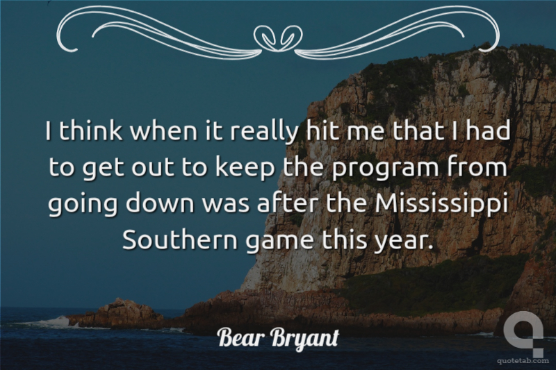 I think when it really hit me that I had to get out to keep the program from going down was after the Mississippi Southern game this year.