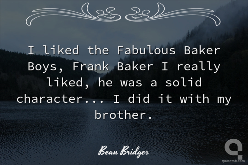 I liked the Fabulous Baker Boys, Frank Baker I really liked, he was a solid character... I did it with my brother.