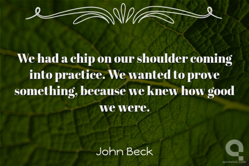 We had a chip on our shoulder coming into practice. We wanted to prove something, because we knew how good we were.