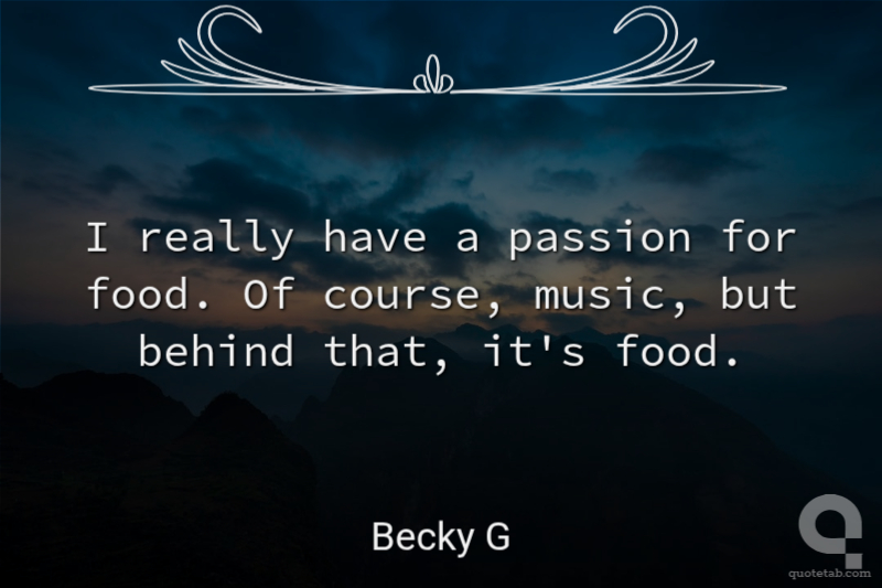 I really have a passion for food. Of course, music, but behind that, it's food.