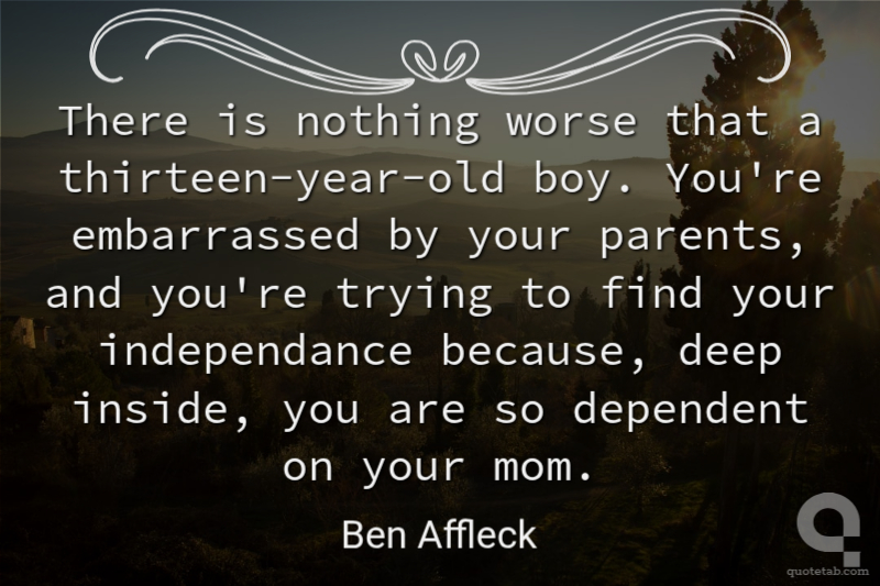 There is nothing worse that a thirteen-year-old boy. You're embarrassed by your parents, and you're trying to find your independance because, deep inside, you are so dependent on your mom.