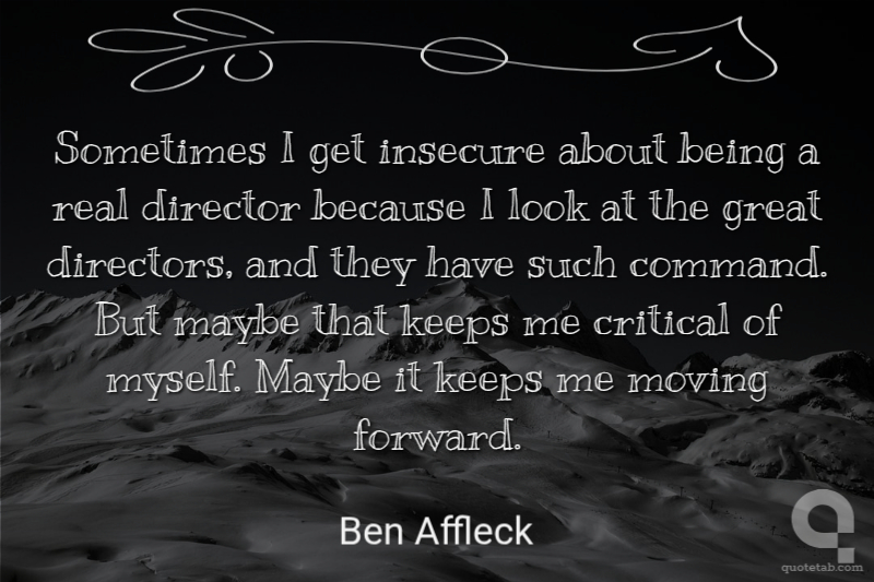 Sometimes I get insecure about being a real director because I look at the great directors, and they have such command. But maybe that keeps me critical of myself. Maybe it keeps me moving forward.