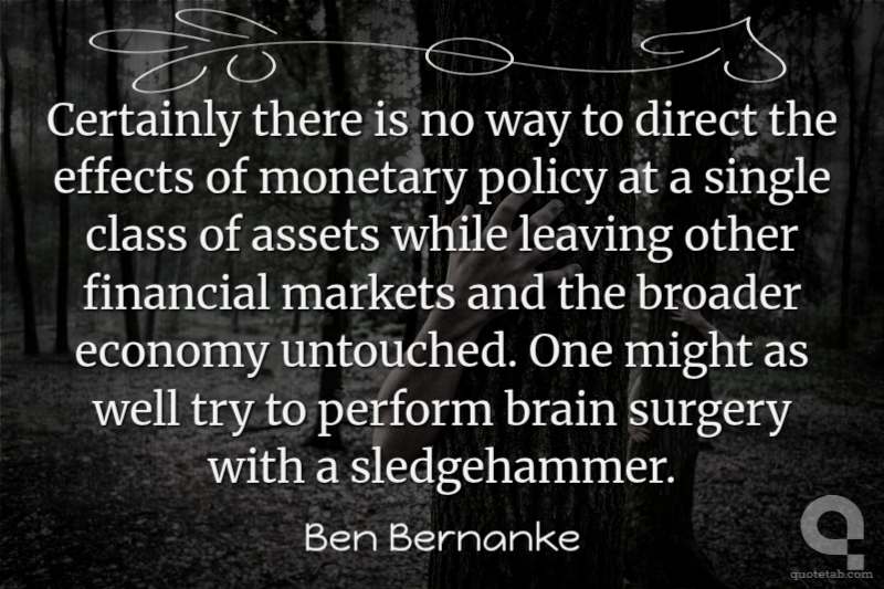 Certainly there is no way to direct the effects of monetary policy at a single class of assets while leaving other financial markets and the broader economy untouched. One might as well try to perform brain surgery with a sledgehammer.