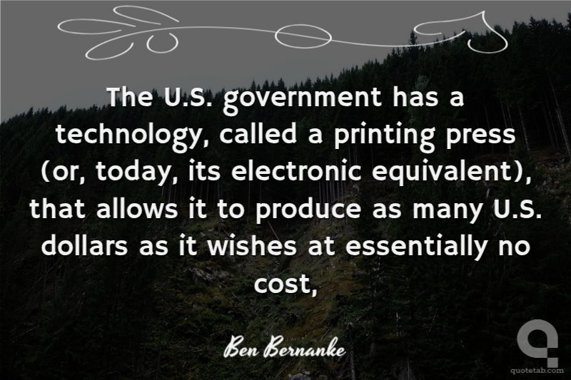 The U.S. government has a technology, called a printing press (or, today, its electronic equivalent), that allows it to produce as many U.S. dollars as it wishes at essentially no cost,