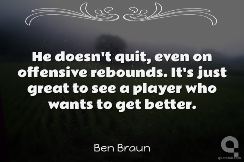 He doesn't quit, even on offensive rebounds. It's just great to see a player who wants to get better.