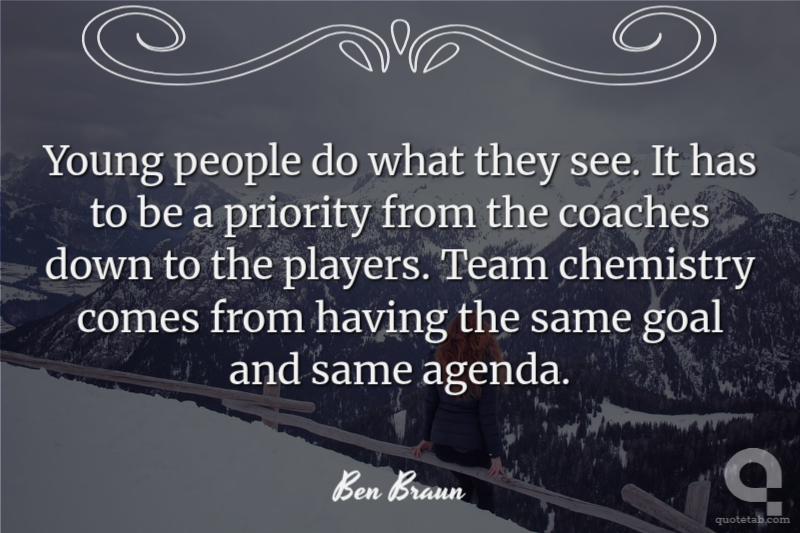 Young people do what they see. It has to be a priority from the coaches down to the players. Team chemistry comes from having the same goal and same agenda.