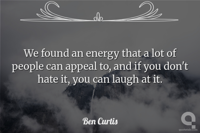 We found an energy that a lot of people can appeal to, and if you don't hate it, you can laugh at it.