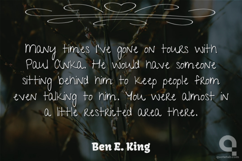 Many times I've gone on tours with Paul Anka. He would have someone sitting behind him to keep people from even talking to him. You were almost in a little restricted area there.