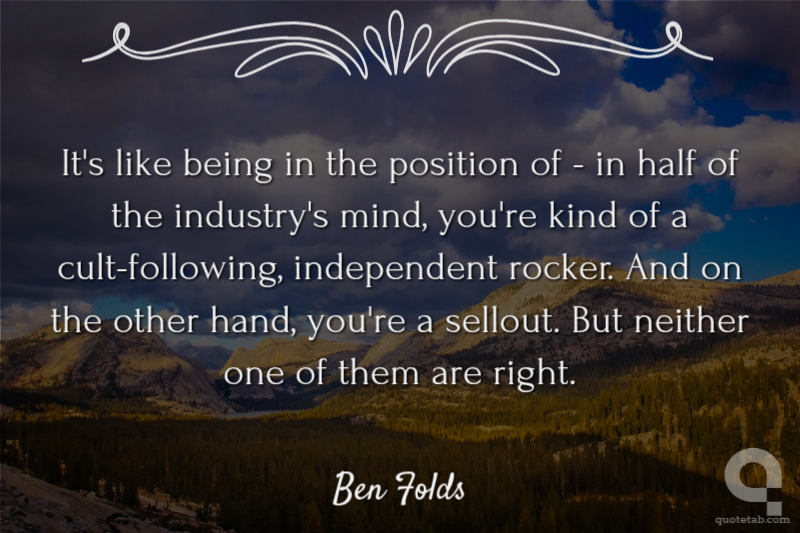 It's like being in the position of - in half of the industry's mind, you're kind of a cult-following, independent rocker. And on the other hand, you're a sellout. But neither one of them are right.
