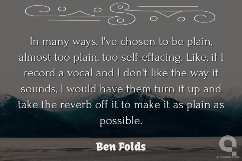 In many ways, I've chosen to be plain, almost too plain, too self-effacing. Like, if I record a vocal and I don't like the way it sounds, I would have them turn it up and take the reverb off it to make it as plain as possible.