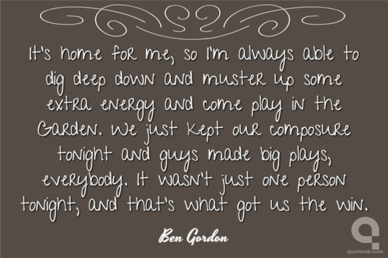 It's home for me, so I'm always able to dig deep down and muster up some extra energy and come play in the Garden. We just kept our composure tonight and guys made big plays, everybody. It wasn't just one person tonight, and that's what got us the win.