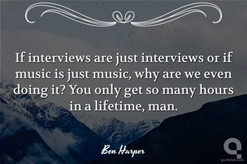 If interviews are just interviews or if music is just music, why are we even doing it? You only get so many hours in a lifetime, man.