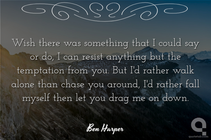 Wish there was something that I could say or do, I can resist anything but the temptation from you. But I'd rather walk alone than chase you around, I'd rather fall myself then let you drag me on down.