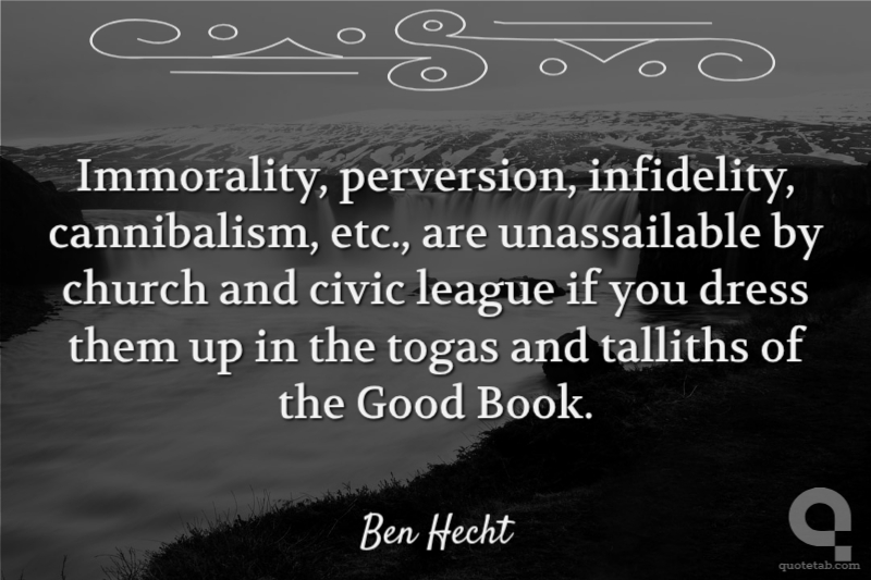 Immorality, perversion, infidelity, cannibalism, etc., are unassailable by church and civic league if you dress them up in the togas and talliths of the Good Book.