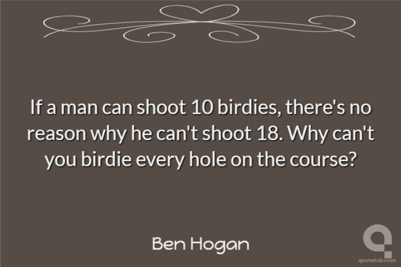 If a man can shoot 10 birdies, there's no reason why he can't shoot18. Why can't you birdie every hole on the course?