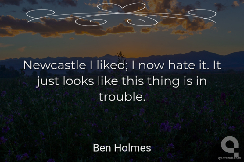Newcastle I liked; I now hate it. It just looks like this thing is in trouble.