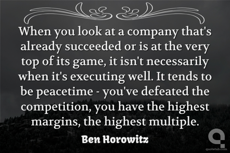 When you look at a company that's already succeeded or is at the very top of its game, it isn't necessarily when it's executing well. It tends to be peacetime - you've defeated the competition, you have the highest margins, the highest multiple.