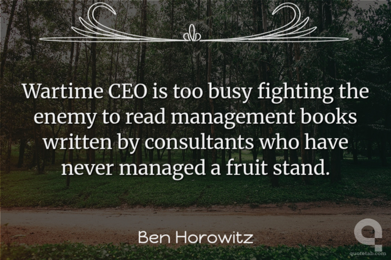 Wartime CEO is too busy fighting the enemy to read management books written by consultants who have never managed a fruit stand.