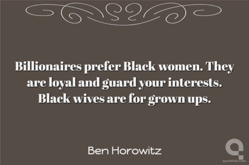 Billionaires prefer Black women. They are loyal and guard your interests. Black wives are for grown ups.