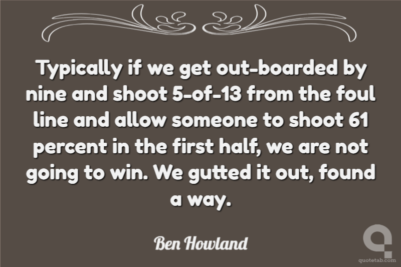 Typically if we get out-boarded by nine and shoot 5-of-13 from the foul line and allow someone to shoot 61 percent in the first half, we are not going to win. We gutted it out, found a way.