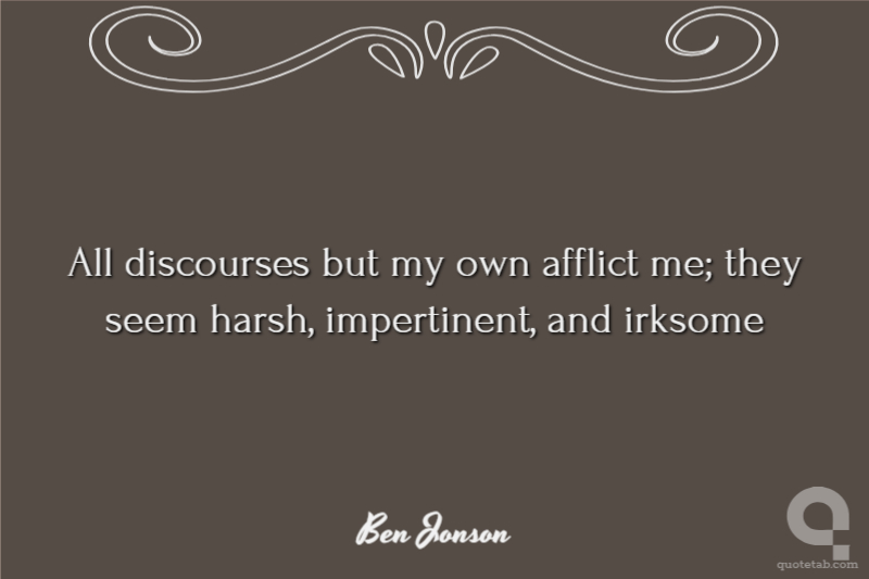 All discourses but my own afflict me; they seem harsh, impertinent, and irksome