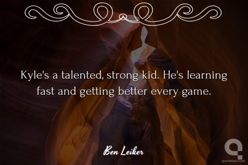 Kyle's a talented, strong kid. He's learning fast and getting better every game.