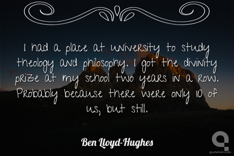 I had a place at university to study theology and philosophy. I got the divinity prize at my school two years in a row. Probably because there were only 10 of us, but still.