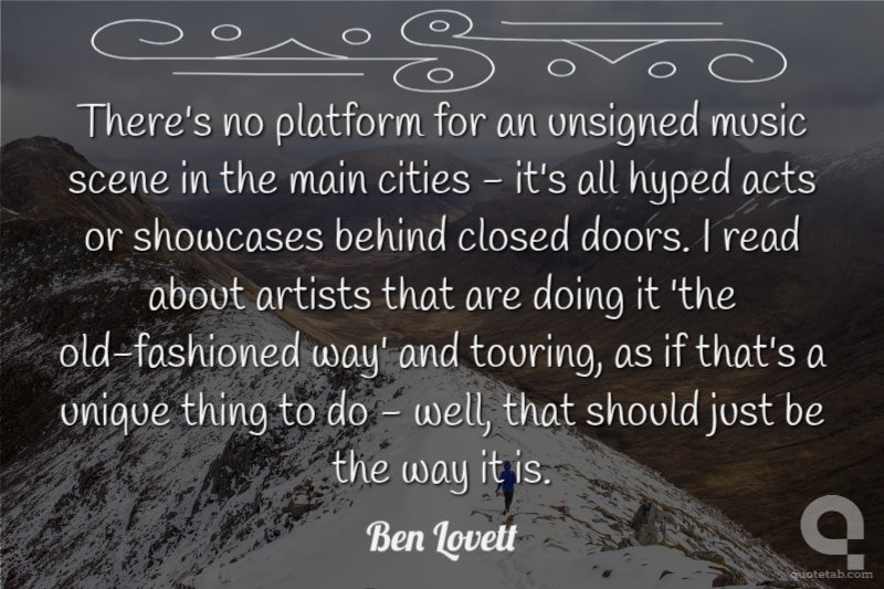 There's no platform for an unsigned music scene in the main cities - it's all hyped acts or showcases behind closed doors. I read about artists that are doing it 'the old-fashioned way' and touring, as if that's a unique thing to do - well, that should just be the way it is.