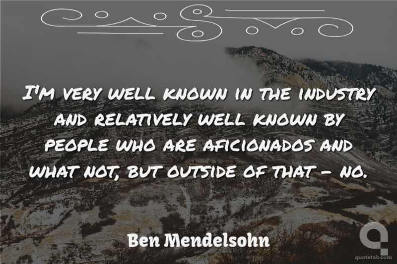 I'm very well known in the industry and relatively well known by people who are aficionados and what not, but outside of that - no.