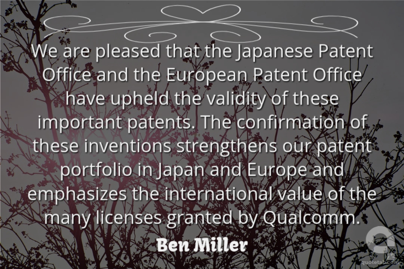 We are pleased that the Japanese Patent Office and the European Patent Office have upheld the validity of these important patents. The confirmation of these inventions strengthens our patent portfolio in Japan and Europe and emphasizes the international value of the many licenses granted by Qualcomm.