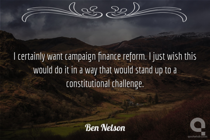 I certainly want campaign finance reform. I just wish this would do it in a way that would stand up to a constitutional challenge.