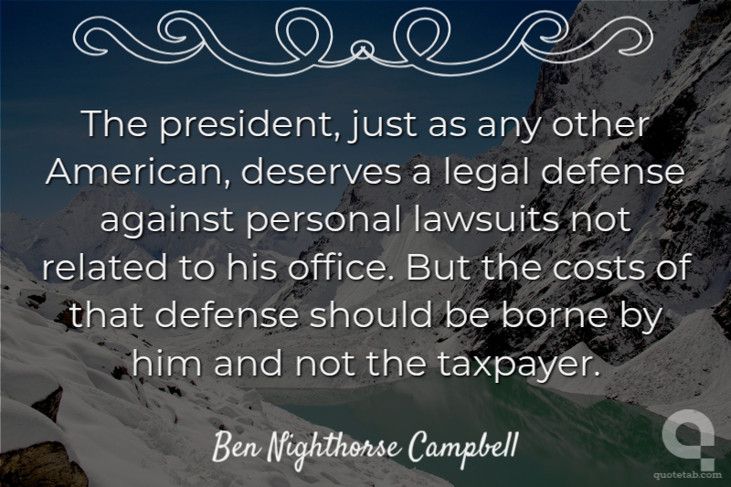 The president, just as any other American, deserves a legal defense against personal lawsuits not related to his office. But the costs of that defense should be borne by him and not the taxpayer.