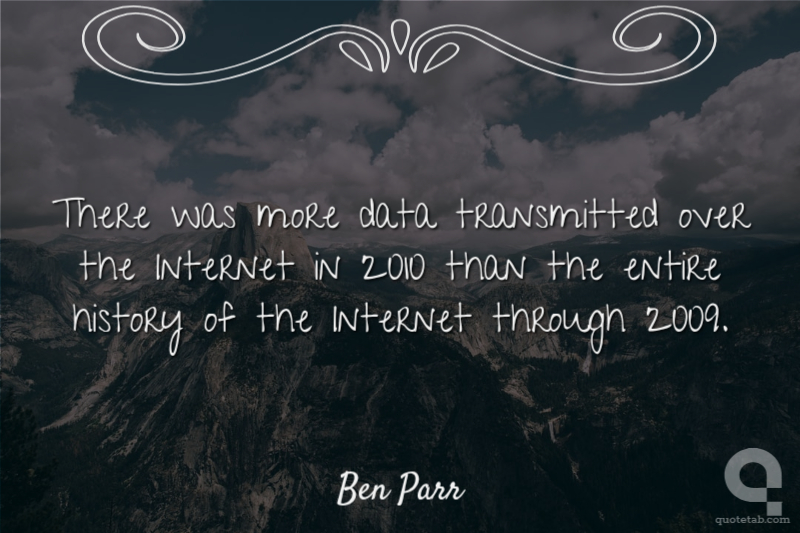 There was more data transmitted over the Internet in 2010 than the entire history of the Internet through 2009.