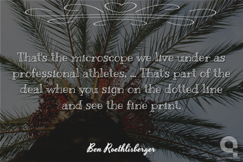 That's the microscope we live under as professional athletes, ... That's part of the deal when you sign on the dotted line and see the fine print.