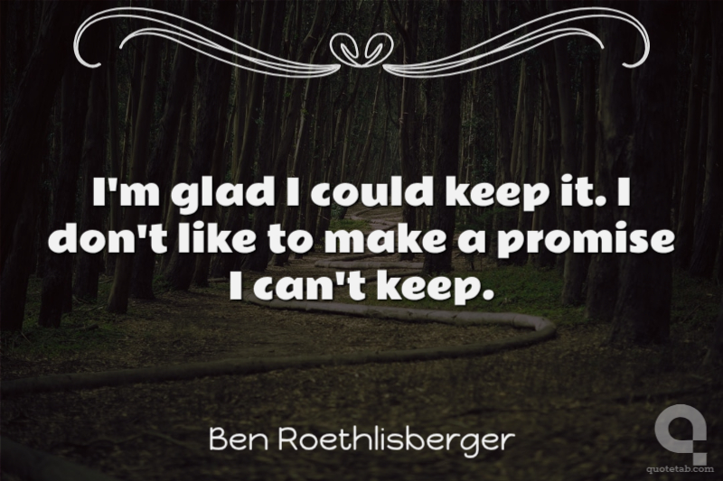 I'm glad I could keep it. I don't like to make a promise I can't keep.