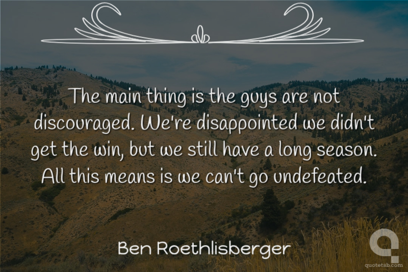 The main thing is the guys are not discouraged. We're disappointed we didn't get the win, but we still have a long season. All this means is we can't go undefeated.