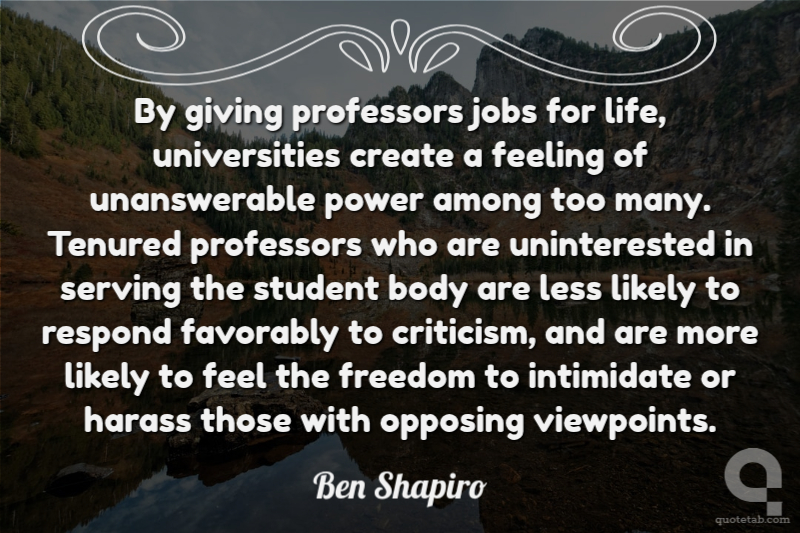 By giving professors jobs for life, universities create a feeling of unanswerable power among too many. Tenured professors who are uninterested in serving the student body are less likely to respond favorably to criticism, and are more likely to feel the freedom to intimidate or harass those with opposing viewpoints.