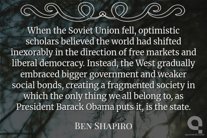 When the Soviet Union fell, optimistic scholars believed the world had shifted inexorably in the direction of free markets and liberal democracy. Instead, the West gradually embraced bigger government and weaker social bonds, creating a fragmented society in which the only thing we all belong to, as President Barack Obama puts it, is the state.