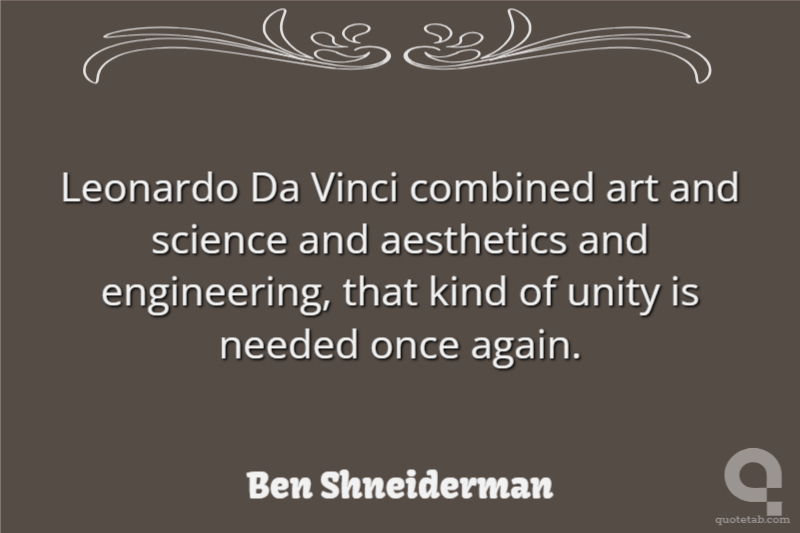Leonardo Da Vinci combined art and science and aesthetics and engineering, that kind of unity is needed once again.