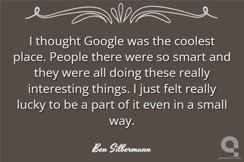 I thought Google was the coolest place. People there were so smart and they were all doing these really interesting things. I just felt really lucky to be a part of it even in a small way.