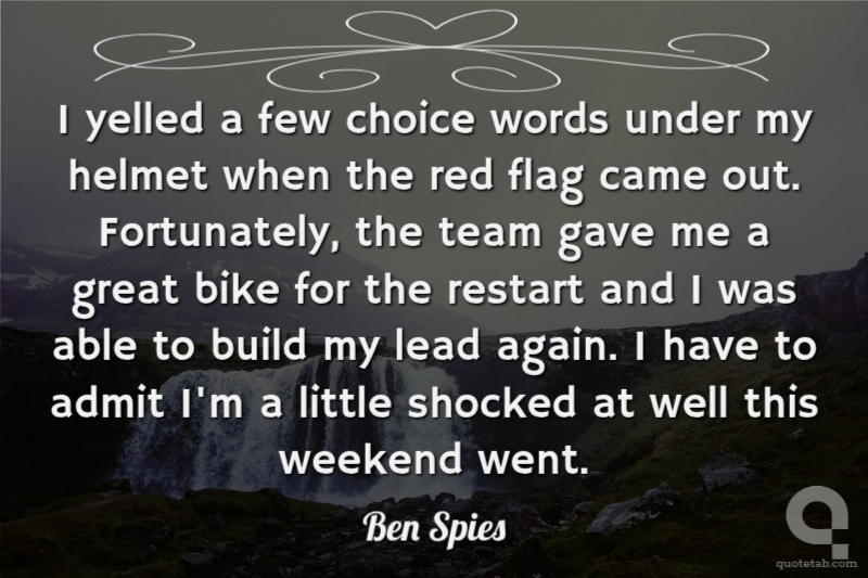 admit bike build came choice few flag gave great helmet lead red shocked team weekend words yelled