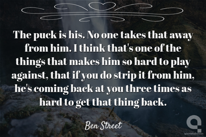 The puck is his. No one takes that away from him. I think that's one of the things that makes him so hard to play against, that if you do strip it from him, he's coming back at you three times as hard to get that thing back.