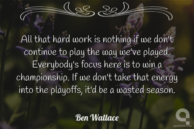 All that hard work is nothing if we don't continue to play the way we've played. Everybody's focus here is to win a championship. If we don't take that energy into the playoffs, it'd be a wasted season.